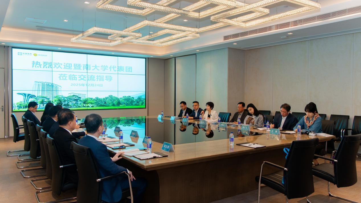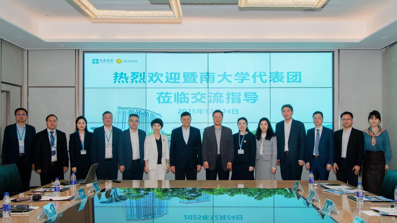 2025年12月24日,暨南大学代表团-广东祈福医院交流会在番禺举行。暨南大学校董、广东祈福集团董事长、祈福医院创始人彭磷基,暨南大学原副校长陆大祥,暨南大学党委常委、统战部部长梁燕,暨南大学对外联络处处长、董事会办公室主任刘毓洁,广东祈福医院执行院长张涛女士,党委书记向继云,副院长简志祥、胡志奇,质量管理总监王晋,附属第一医院党委书记郭军,附属第一医院院长郑小飞等出席会议。会议由广东祈福医院副院长区俊文主持。